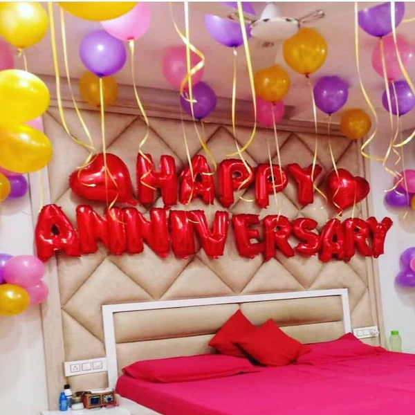 Simple Anniversary Balloon Decoration at Home in Bedroom Set