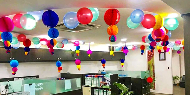 Yes! We decorate corporate offices including reception areas, conference rooms, cafeteria spaces, workstations for festivals, CEO/MD cabins, meeting rooms, open office areas, terrace/rooftop spaces, and parking areas for outdoor events.
