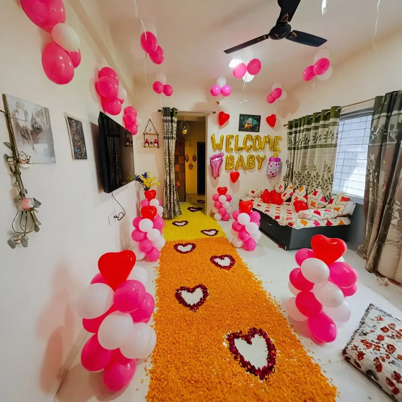 Welcome Baby Girl Balloon Decoration in Living Room Set