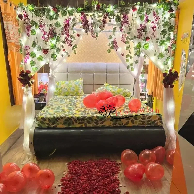 •Bed Decorated with Rose Petals