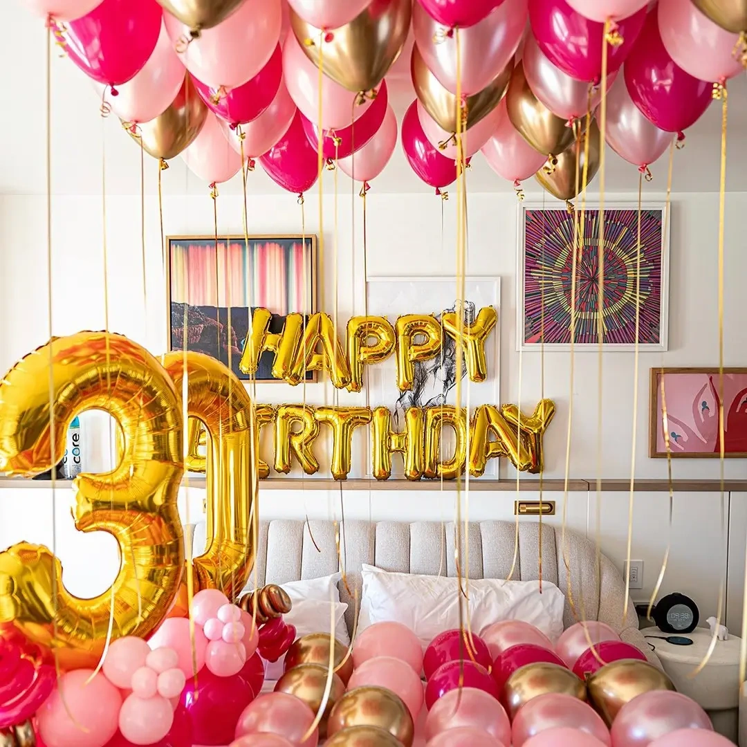 Simple and Romantic Birthday Surprise with Balloons in room for Husband Set