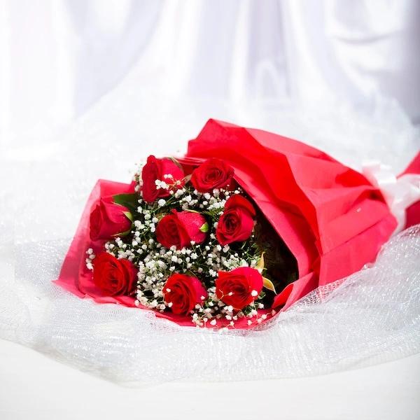 8 Red Roses Bouquet Flowers
