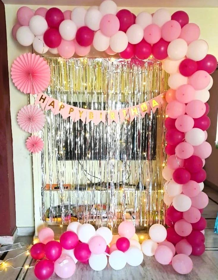 Elegant Arch of 200 Balloons in Shades of Dark Pink, Baby Pink, and White