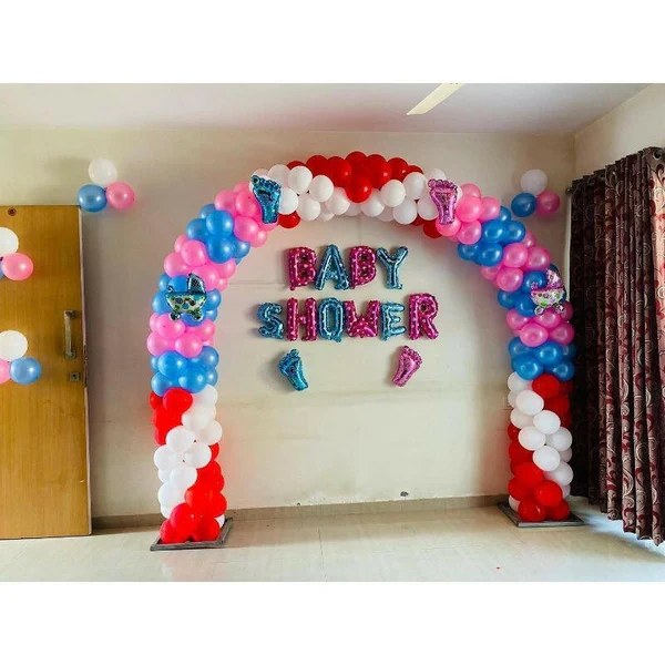 Total 250 balloons in U shape structure on wall of colors as shown in the image.