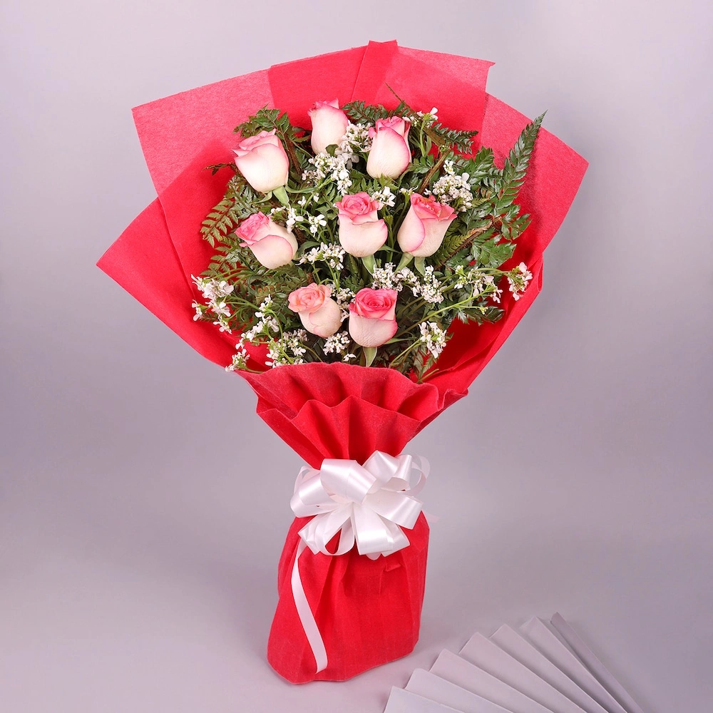 Amber Embraced 10 Pink Roses Flowers Bouquet
