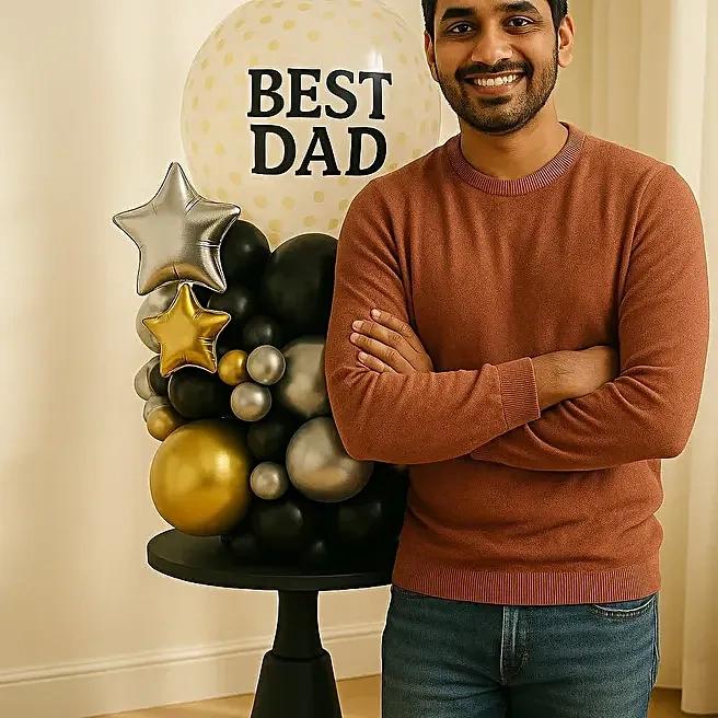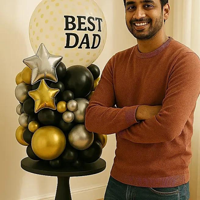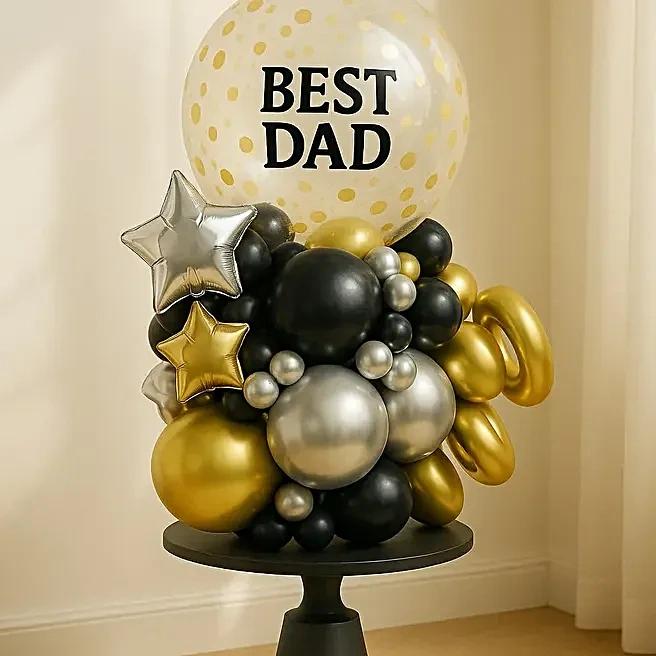 •1 Golden Confetti Balloon with BEST DAD Sticker