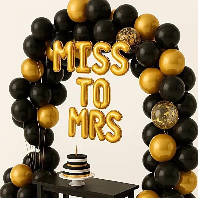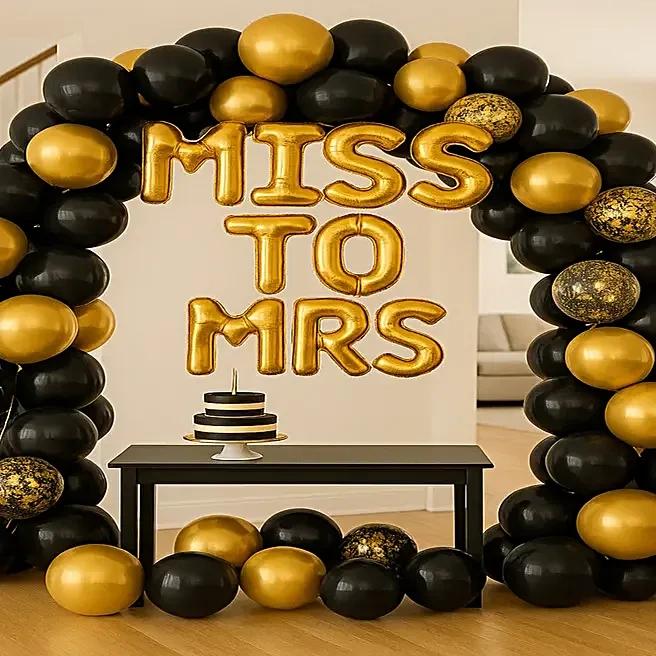 •“MISS TO MRS” golden foil letter balloons