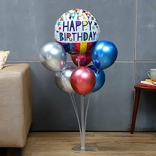 One Balloon Stand with Happy Birthday Printed Foil