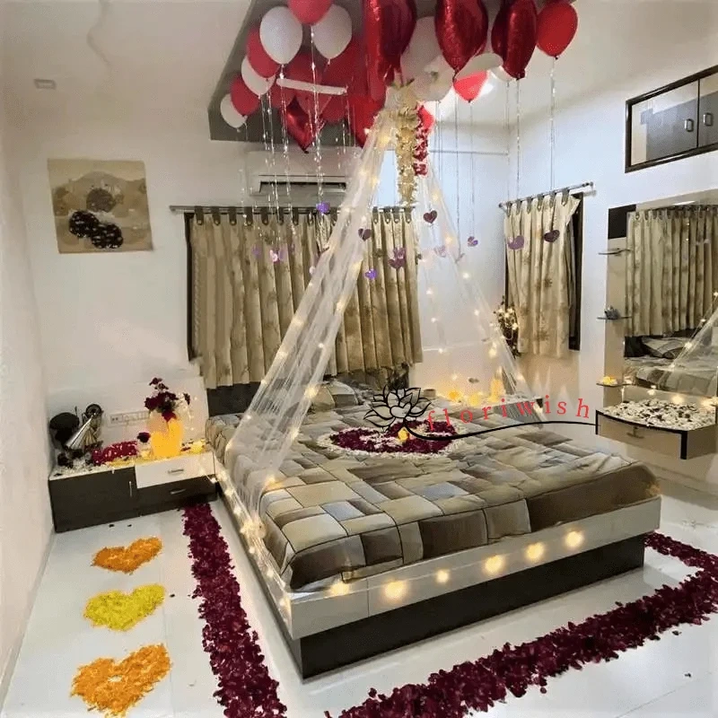 •Bed Decorated with Flowers