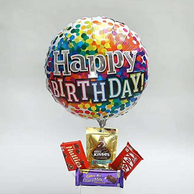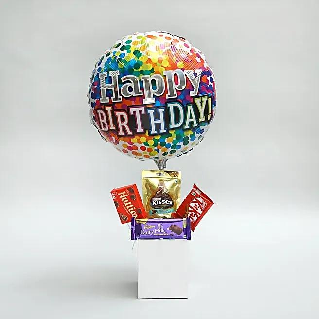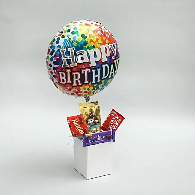 White Square Box with Happy Birthday Printed Round Foil and Blue Paper Fillers