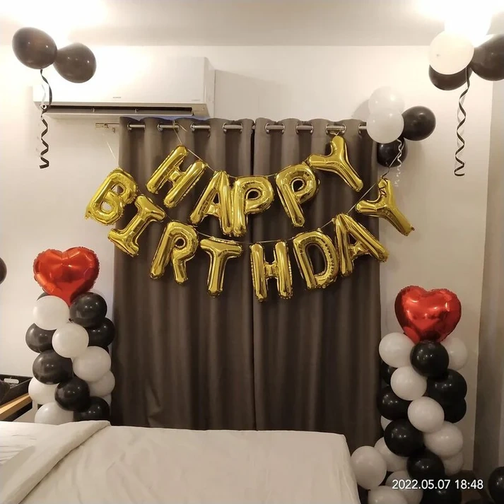 •Happy Birthday foil letters.