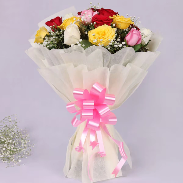 Flowers Contains: 10 Red Roses + 10 White Carnations