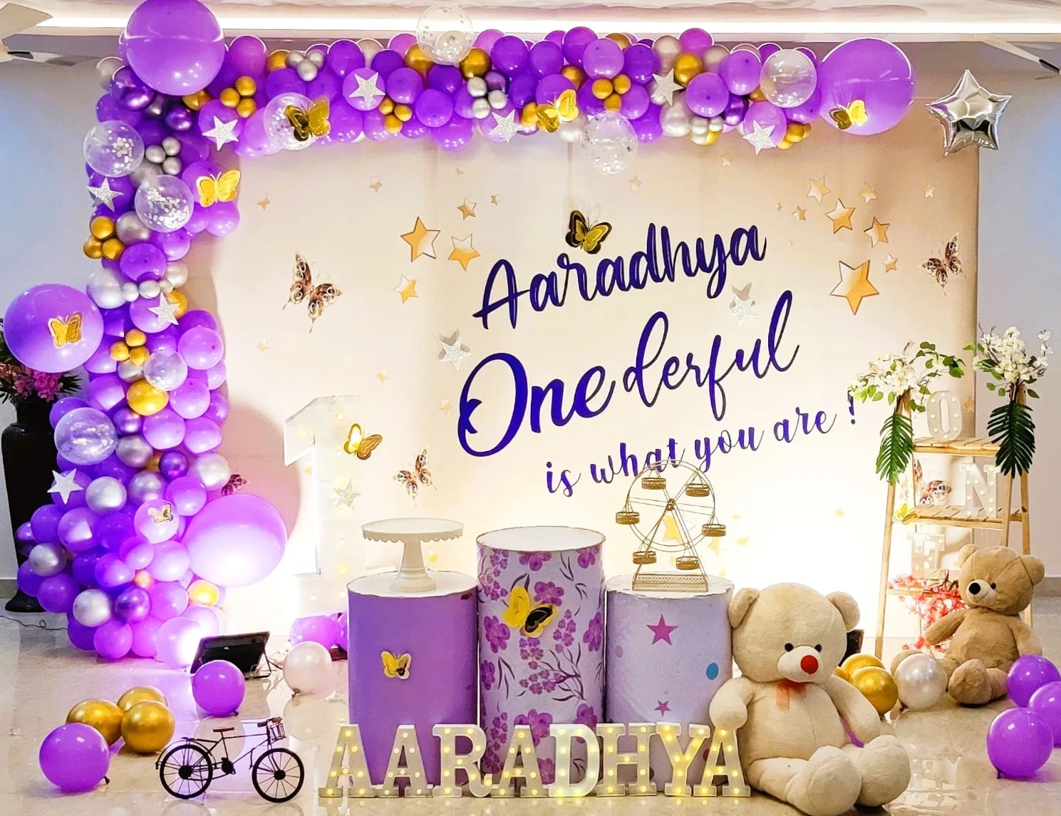 •Stunning Balloon Arch in Purple, Chrome Purple, Yellow, and Chrome Gold