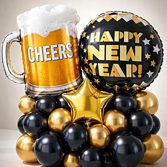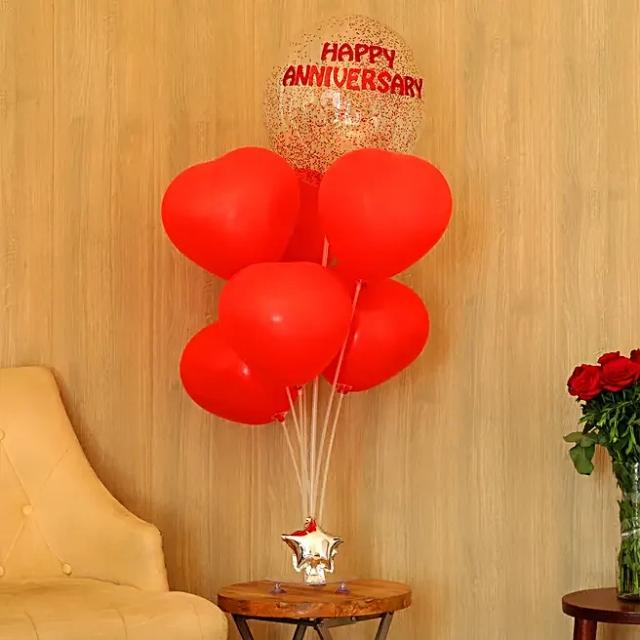 One Balloon Stand with Black-Red Balloons Red polka dots balloons as per availability