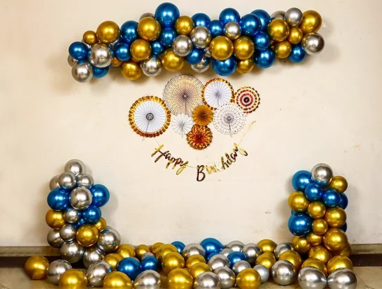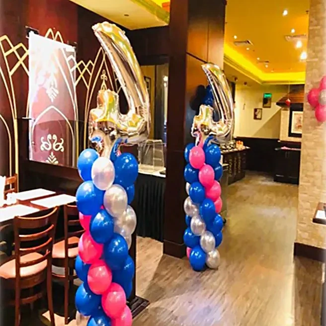 1 Balloon arch Blue/Pink/Silver color as backdrop with Happy Birthday foil balloon on it