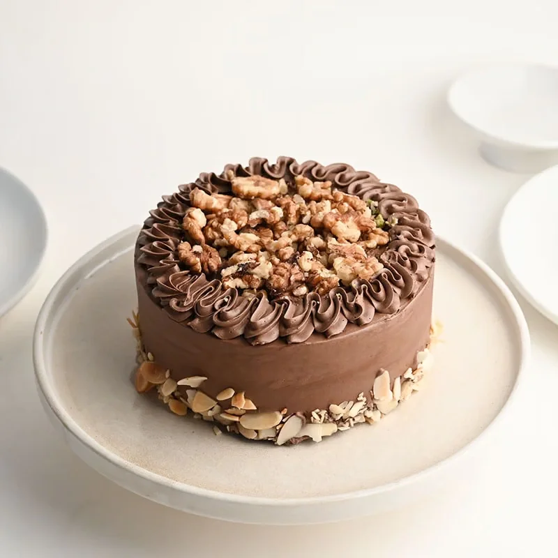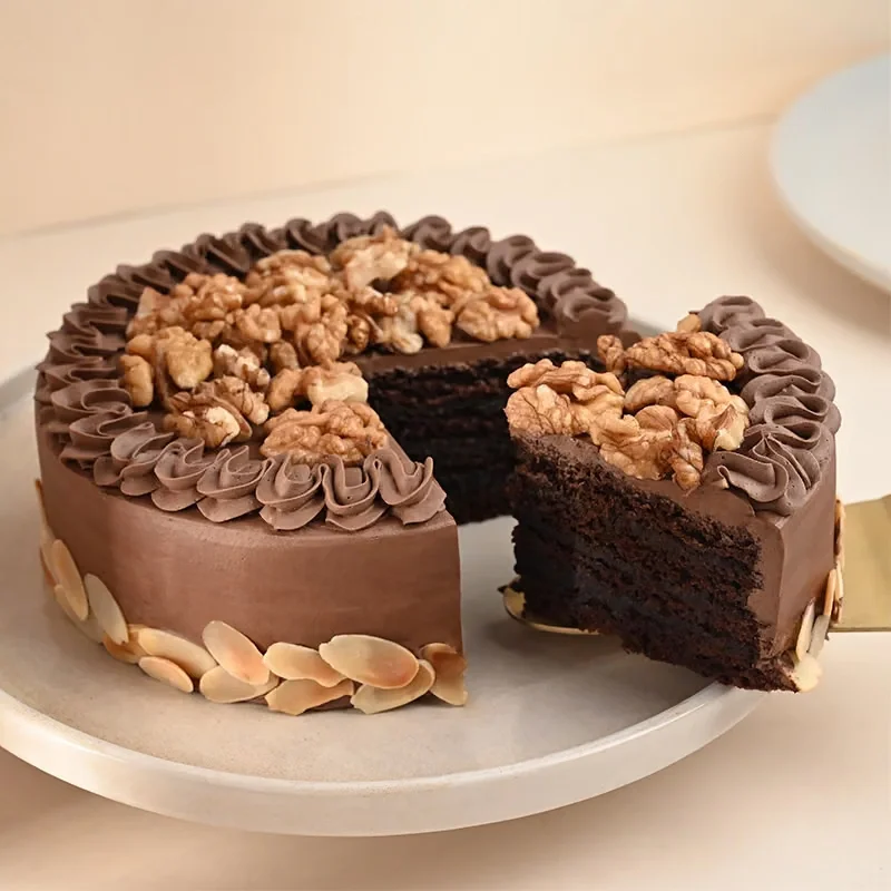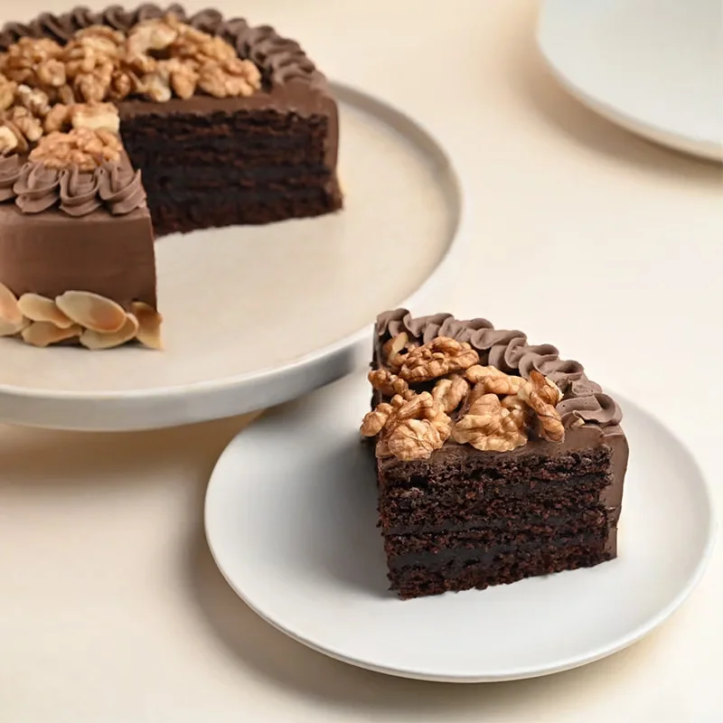 • Looking for a cake that's both indulgent and tempting? Look no further than our Chocolate Walnut Cake! With its sumptuous layers of rich chocolate sponge and creamy chocolate frosting, this Cream Cake is a chocolate lover's dream come true. And that's not all - it's generously adorned with crunchy walnuts and a drizzle of luscious choco sauce, making it a feast for both the eyes and the taste buds. Perfect for any occasion, our Chocolate Walnut Cake is the ultimate temptation you won't be able to resist.