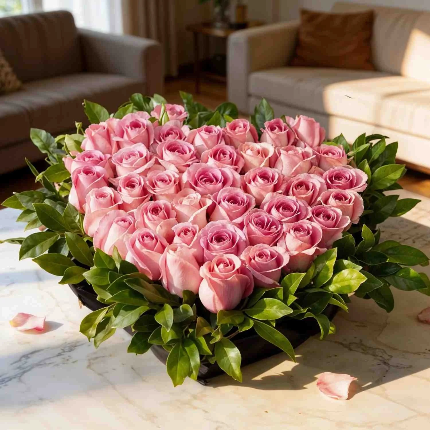 Heart Shaped Arrangement of Pink Roses Bouquet