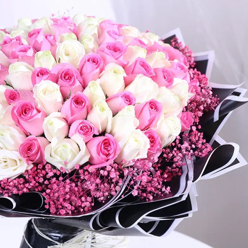100 White And Pink Roses Inn Black Premium Paper