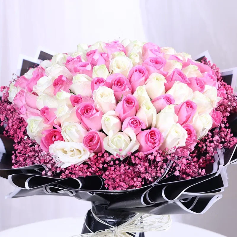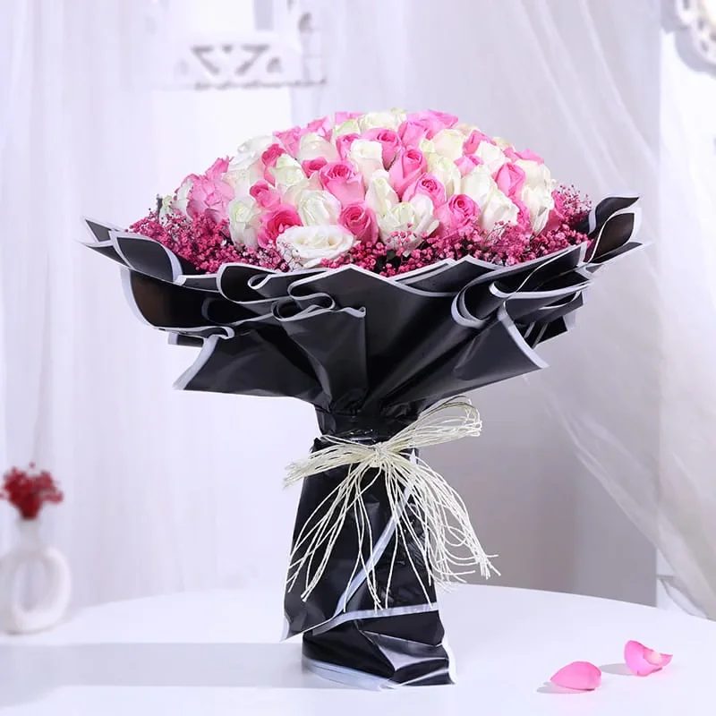 Radiance Of Romance In Pink N White Roses Bouquet