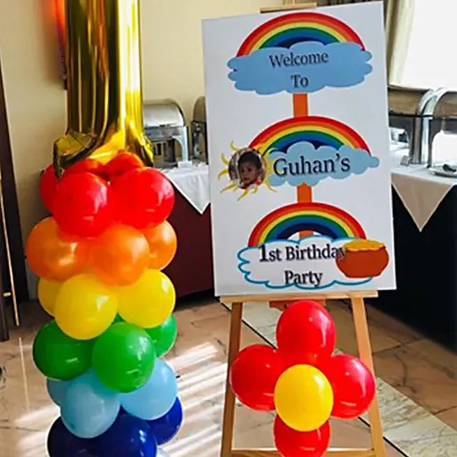 1 Balloon arch Rainbow color as per Theme at entrance or at backdrop as per venue.