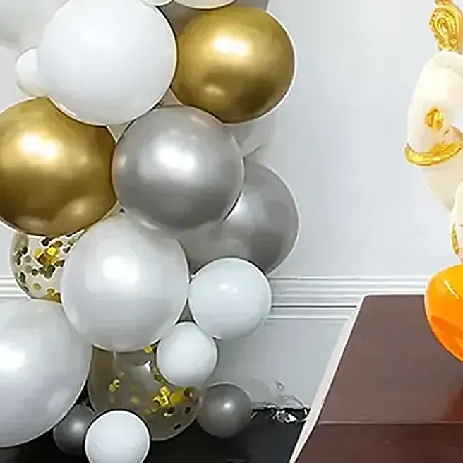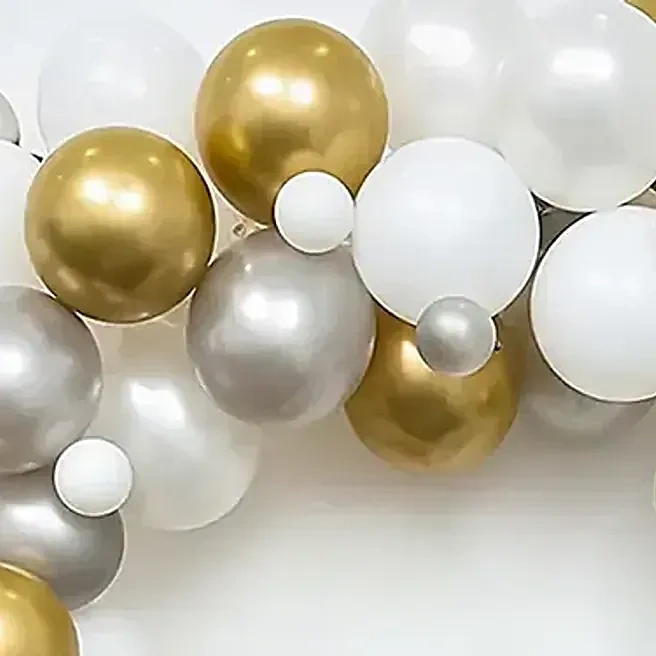 Balloon Arch: 100 to 120 Silver Golden Chrome Silver White Metallic Balloons