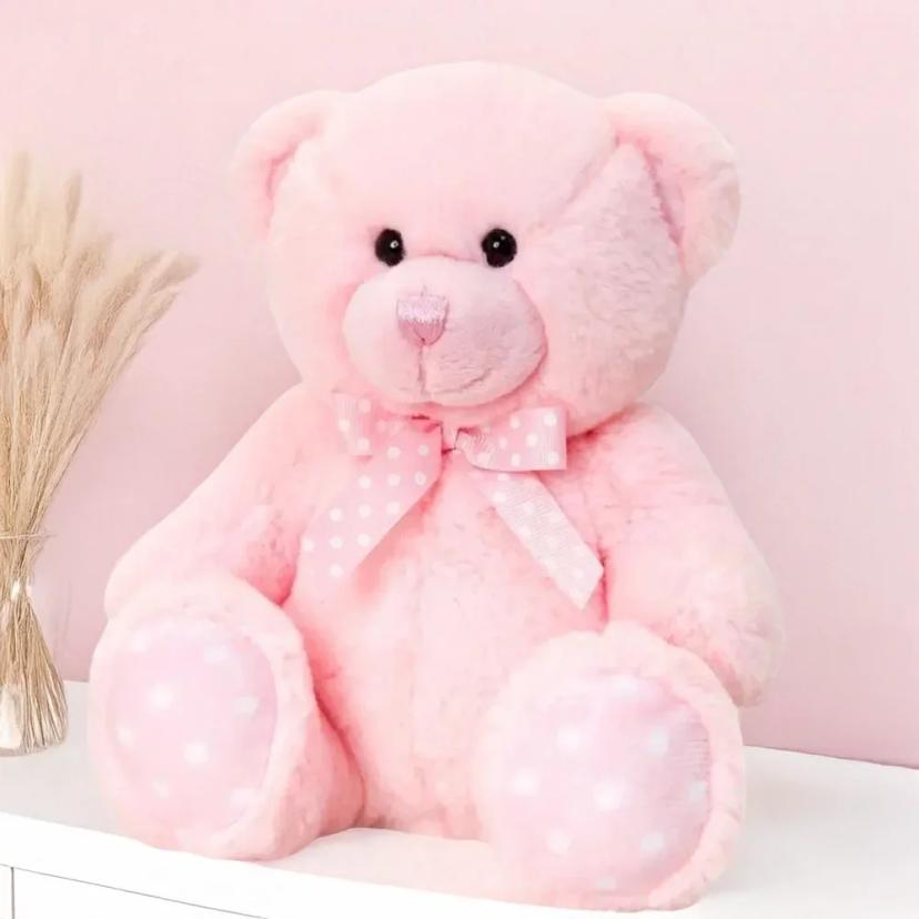 12 inch huggable teddy with floppy ears and soft pink fur