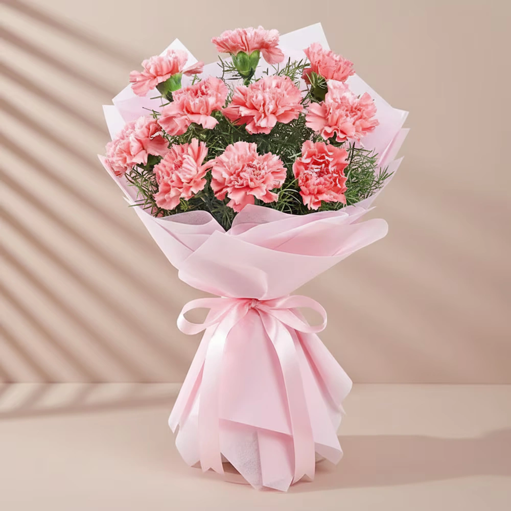 10 Pink Carnations Flowers Bouquet