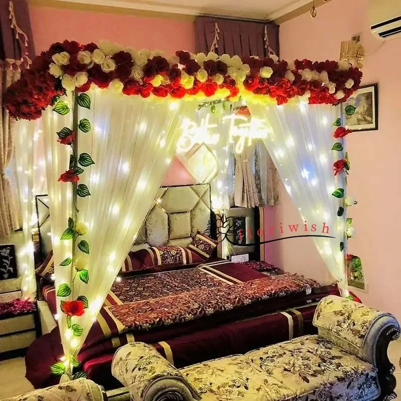 Yes! Fresh rose petals are signature element of room decoration. We create various designs: Classic heart shape on bed center, "I Love You" written with petals, initials of couple, pathway from door to bed, scattered romantic arrangement, mandala patterns, combination with candles forming borders. We use 500-1000 fresh rose petals typically (2-4 dozen roses). Colors available: red (classic romance), pink (sweet love), white (pure elegance), yellow (friendship/joy), mixed colors (playful). Petals are fresh, fragrant, and arranged 1-2 hours before surprise ensuring they look perfect. We also clean up petals next day if requested (additional charge may apply).