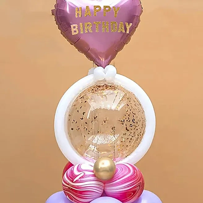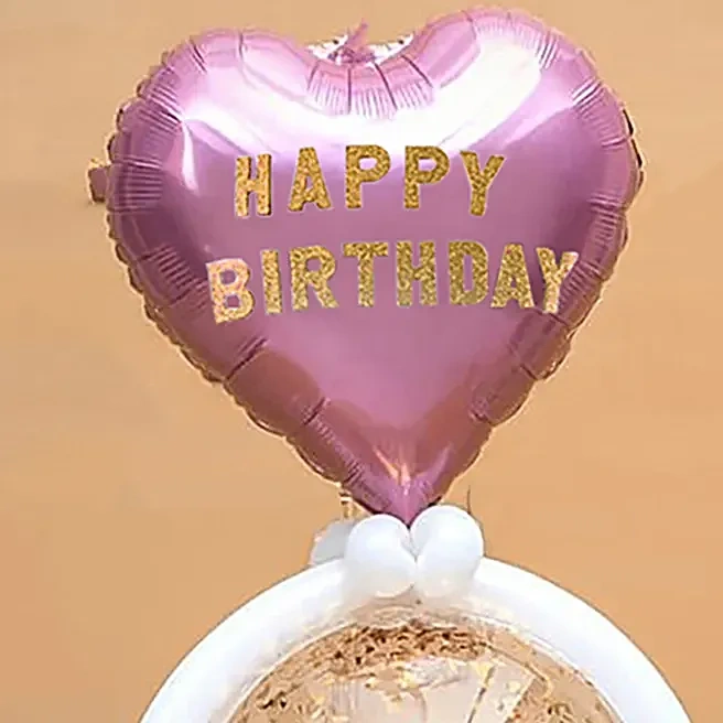 Pink Heart Shaped Foil Balloon with Golden Happy Birthday Sticker