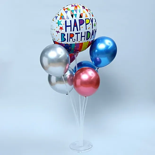 One Balloon Stand with Happy Birthday Printed Foil